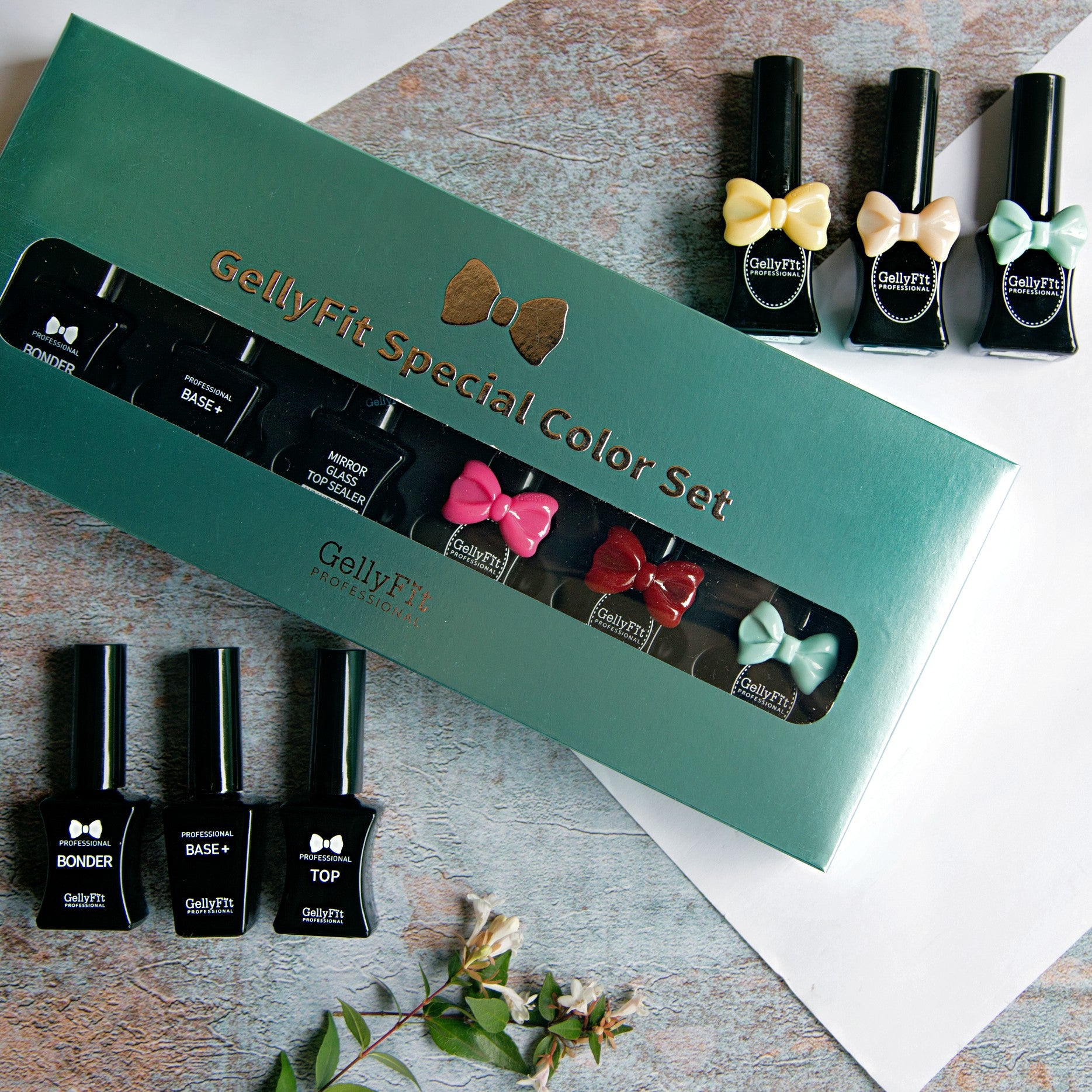 - 3 x Gellyfit Colors (11ml) A selection of 3 x regular Gellyfit colors is included in this sample set, for you to create beautiful, high pigmented manicures